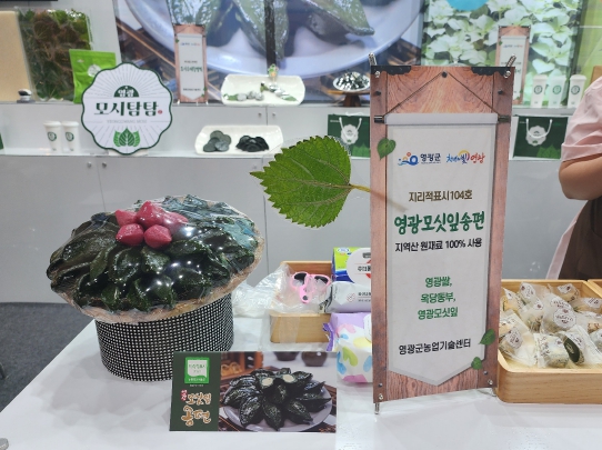 이번 행사에서는 (사)영광에서 모싯잎떡을 만드는 사람들과 함께 참여하여 지리적표시 제104호 영광모싯잎송편, 농촌진흥청 기술이전 제품 굳지않는 떡, 지역소멸대응 뉴트로 떡방앗간(가업승계 및. 청년창업 업체 제품 홍보), 영광보리·모싯잎산업특구 등을 전시 홍보했으며, 우리 농산물 활용, 비건 식품 등을 소재로 국내·외 유통 바이어들의 이목을 집중시켰다.