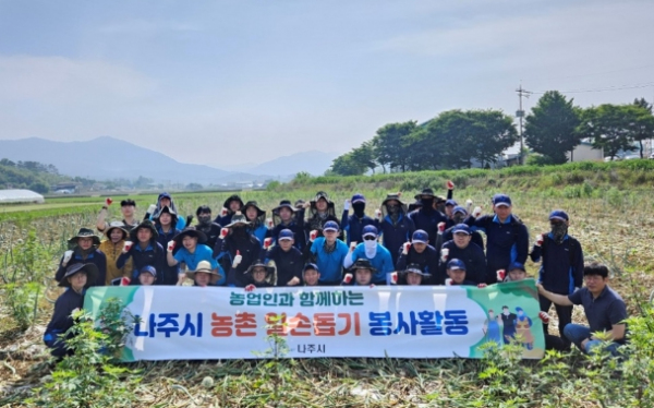 전라남도 나주시는 5월 배농가에 이어 이 달에도 민·관·군이 함께하는 ‘농촌사랑 일손 돕기’를 추진했다고 19일 밝혔다.