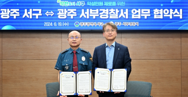 [남도저널 김홍열 기자] 광주광역시 서구가 서부경찰서(서장 장명본)와 악성민원에 신속하고 강력하게 대응할 수 있는 협업 시스템을 구축했다. 양 기관은 최근 급증하는 악성민원에 적극 대응하고 민원담당 공무원을 보호하기 위해 19일 서구청에서 ‘착한도시 서구, 악성민원 제로’를 위한 업무 협약을 체결했다.