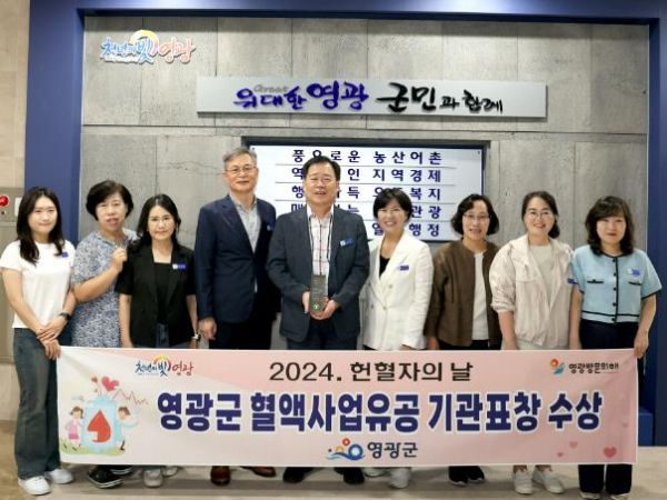 [남도저널 김종훈 기자] 영광군은 지난 6월 14일 2024년 헌혈자의 날을 기념하여 대한적십자사로부터 인도주의 운동에 적극 참여하여 생명을 살리는 혈액사업 발전에 기여한 공로를 인정받아 기관표창을 수상했다.