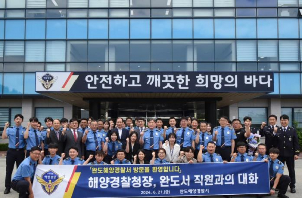[남도저널 양용숙 기자] 완도해양경찰서는 21일 “김종욱 해양경찰청장이 완도해양경찰서를 방문하여 직원들을 격려하고, 여름철 해양안전 예방과 재난대응 태세 확립을 주문했다.”고 밝혔다.