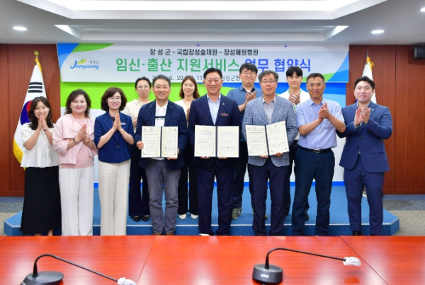 [남도저널 김종훈 기자] 장성군이 지난 20일 국립장성숲체원, 장성혜원병원과 ‘임신‧출산 지원 서비스’ 추진을 위한 업무협약을 체결했다.