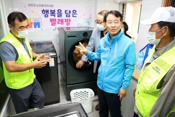 이날 강진원 군수는 빨래방 운영 현장에 방문해, 서비스 이용에 불편함은 없는지 살피며 어르신들과 대화를 나눴다.