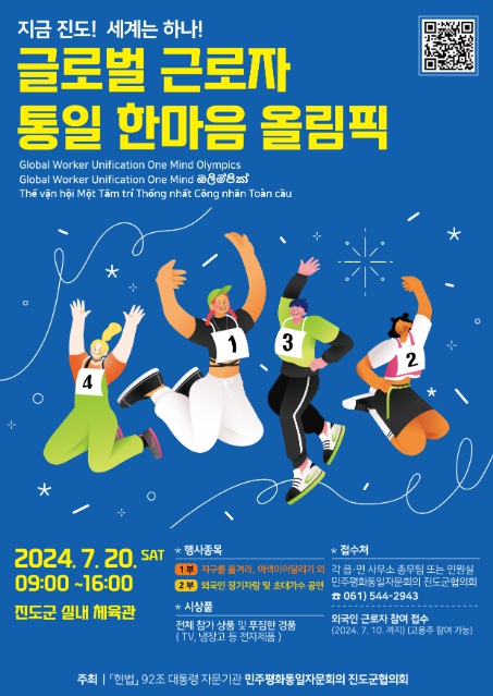 [남도저널 김승귀 기자] 민주평화통일자문위원회 진도군협의회가 전국의 외국인 근로자와 다문화 가정, 탈북민이 함께하는 ‘전국 다국적 근로자 통일 한마음 올림픽’ 행사를 오는 7월 20일 진도군 실내체육관에서 열린다.