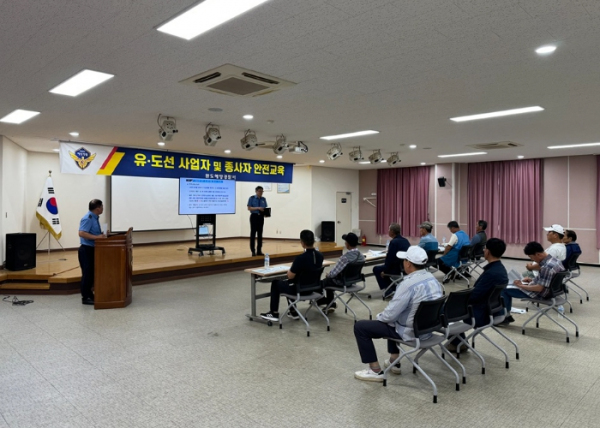 [남도저널 양용숙 기자] 완도해양경찰서는 지난 24일 경찰서 3층 대강당에서 유‧도선 사업자 및 종사자 11명 대상으로 해양안전문화 확산과 해양사고 발생 시 대처능력 향상을 위한 2024년 정기 안전교육을 실시했다고 밝혔다.