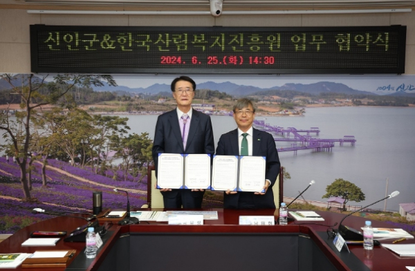 [남도저널 봉현구 기자] 신안군은 6월 25일 군청에서 한국산림복지진흥원과 산림복지 사회적 가치 향상을 위한 업무협약을 체결했다.