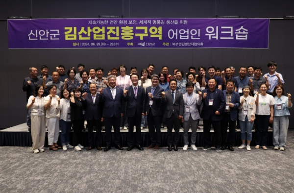 [남도저널 봉현구 기자] 신안군은 김산업 진흥구역으로 지정된 지도읍, 임자면 김양식 어업인 약 40명을 대상으로 6월 25일부터 26일까지 1박 2일간 자은면 라마다·씨원리조트에서 김양식 어업인 친환경 워크숍을 개최했다.