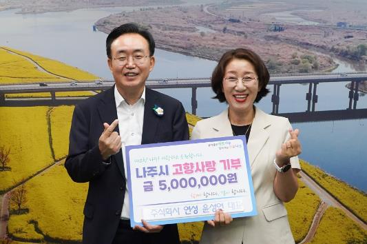 [남도저널 김용범 기자] 전라남도 나주시는 ㈜연성 윤성연 대표가 지난해에 이어 올해도 나주시에 고향사랑기부금 500만원을 기탁했다고 28일 밝혔다.