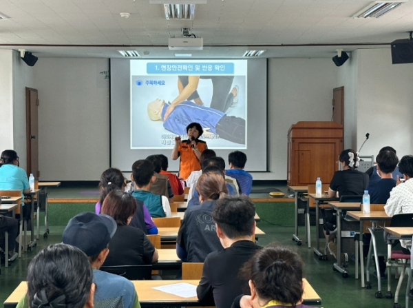 교육 내용은 심폐소생술 이론 및 실습, 자동제세동기 사용법 등 실생활에 필요한 응급처치 방법으로 구성했으며, 담양소방서에서 교육을 맡아 진행했다.