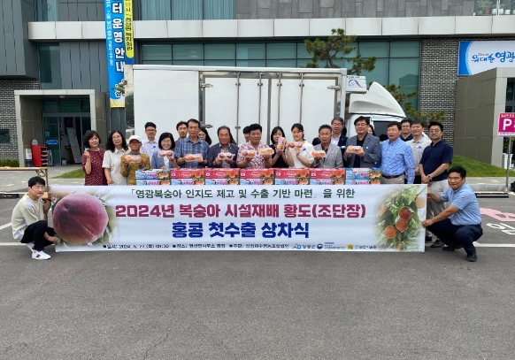 [남도저널 김종훈 기자] 영광군은 지난 6월 27일 황도(조단장) 복숭아를 공동 선별하여 홍콩으로 수출하는 상차식을 염산면사무소 광장에서 개최했다.