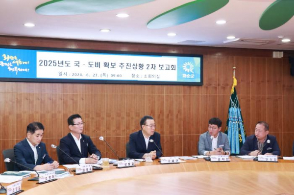 [남도저널 김용범 기자] 화순군은 27일 군청 소회의실에서 담당 부서장이 참석한 가운데 '2025년도 국․도비 확보 추진 상황 2차 보고회를 개최했다.