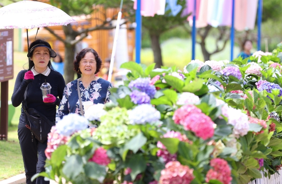 수국 화훼농가에서는 축제를 기념해, 주먹 2개를 합친 것보다 소담스러운 아름다운 수국 500송이를 참가자들에게 나눠주며, ‘꽃을 선물 받는 기분 좋은 추억’을 선물했다.