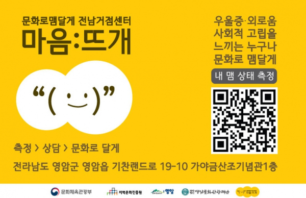 [남도저널 김승귀 기자] (재)영암문화관광재단은 우울증, 외로움, 사회적 고립을 느끼는 분들을 대상으로 문화로 마음을 달래주는 2024 문화로 사회연대 사업을 7월부터 12월까지 운영한다.