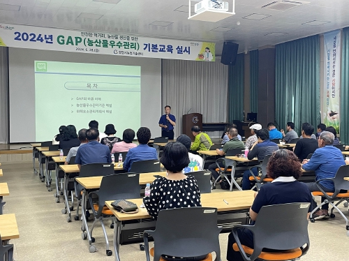 [남도저널 김영도 기자] 광양시는 지난 6월 28일 농업인교육관에서 농산물우수관리(GAP) 인증 신규 희망 농가와 갱신 농가 46여 명을 대상으로 ‘2024년 농산물우수관리(GAP) 인증 기본교육’을 실시했다고 밝혔다.
