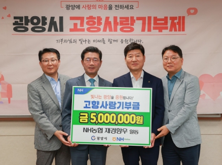 [남도저널 김영도 기자] 광양시는 NH농협 재경향우 10명이 광양의 빛나는 발전을 응원하기 위해 고향사랑 기부에 동참해 기부금 500만원을 전달했다고 3일 밝혔다.