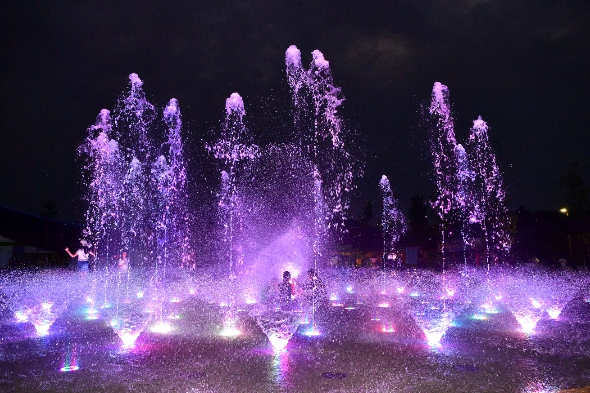 상무평화공원 바닥분수는 음악에 맞춰 조명과 물줄기가 연출되는 ‘음악분수’다.