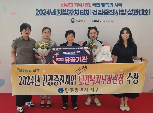 [남도저널 김홍열 기자] 광주광역시 서구는 5일 제16회 지방자치단체 건강증진사업 성과대회에서 우수 지자체로 보건복지부장관 표창을 수상했다. 서구는 지난해 통합건강증진사업 우수사례 공모 선정에 이어 2년 연속 우수 지자체에 선정됐다.