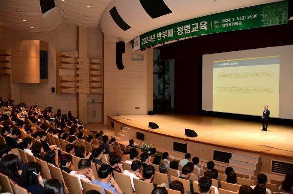 이날 교육은 국민권익위원회 청렴 교육 전문 강사로 활동하고 있는 행정안전부 정수효 서기관을 초청해 청탁금지법과 이해충돌방지법, 갑질 금지 규정을 포함한 공무원 행동강령 등 반부패 법령에 관해 설명했다.