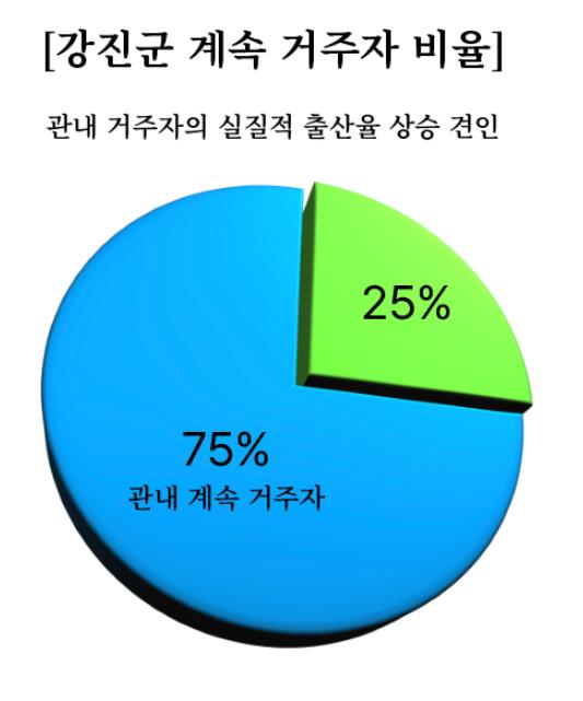 이러한 점에서 임신․출산의 주 연령대인 MZ세대와 현금성 지원을 통해 경제적 부담을 경감시키는 강진군 육아수당이 제대로 맞물리며 출산율 상승을 견인하고 있다.