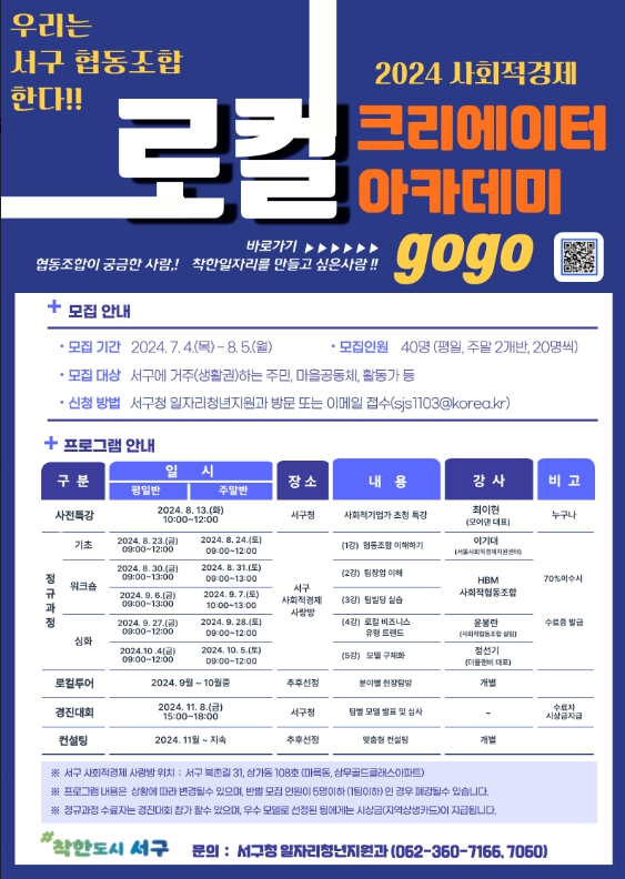 [남도저널 김홍열 기자] 광주광역시 서구가 내달 5일까지 ‘사회적경제 로컬크리에이터 아카데미’참여자를 모집한다.