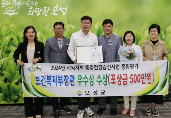 [남도저널 서인호 기자] 보성군은 지난 5일 지방자치단체 건강증진사업 성과대회에서 ‘2024년 지역사회 통합건강증진사업 종합평가 우수 지자체’로 선정돼 보건복지부장관 표창과 500만 원의 포상금을 받았다고 밝혔다.