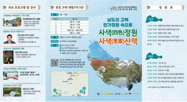 [남도저널 양용숙 기자] 장흥군은 국가유산청에서 공모한 2024년 지역문화유산 활용사업의 일환인 고택 종갓집 문화유산 활용사업에 “남도의 고택 민가정원 속으로 사색(四色)정원 사색(思索)산책”이 선정되어 추진 중이다.