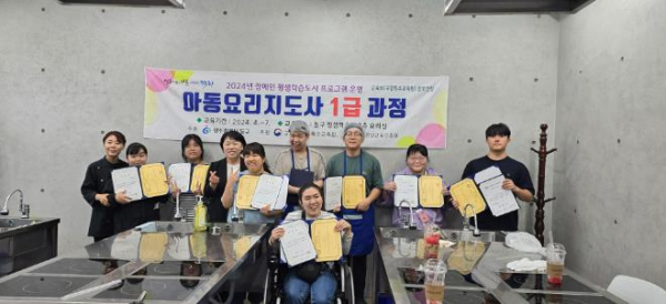 자격증을 취득한 이들은 동구평생학습관에서 운영 중인 아동요리지도사 1급 과정에 참여 중인 10명의 청각·시각·뇌병변 등 장애인 대학생 중 9명이다.