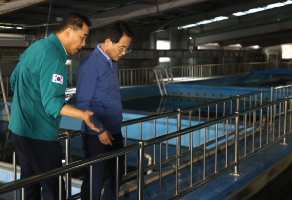 강 군수는 이날 관계자들과 함께 주요 시설물인 배수지와 침전지, 응집지 등의 내부를 확인하고 이상 여부를 점검했다. 강진정수장은 급속여과 방식을 사용해, 강진읍과 군동면 일부 지역에 급수를 담당하고 있다.