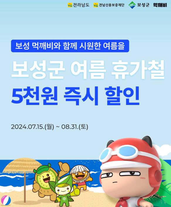 [남도저널 서인호 기자] 보성군은 여름 휴가철을 맞아 15일부터 8월 31일까지 2달간 공공배달앱 ‘먹깨비’ 할인 이벤트를 추진한다고 밝혔다.