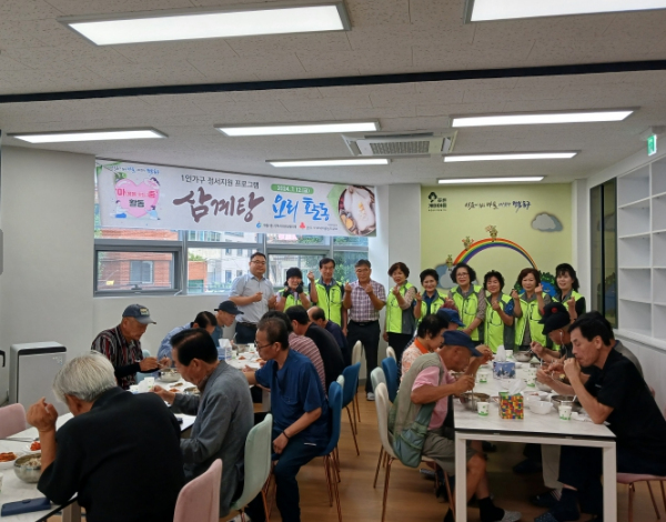 이번 행사는 15일 초복을 앞두고 쪽방촌에 거주하는 1인 가구 30여 명과 함께 삼계탕을 만들고 나누면서, 식생활 개선과 사회적 고립감 해소를 위해 마련됐다.