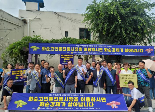 [남도저널 김용범 기자] 화순군은 지난 13일 화순고인돌전통시장에서 지역 상권 활성화와 관광 이미지 개선 캠페인을 펼쳤다고 밝혔다.