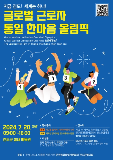 [남도저널 김승귀 기자] 탈북민과 함께하는 ‘전국 글로벌 근로자 통일 한마음 올림픽’ 행사가 오는 20일, 전남 진도군 실내체육관에서 개최 된다.