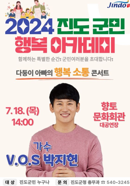 [남도저널 김승귀 기자] 진도군은 2024년 7월'진도 군민행복 아카데미'를 오는 18일 목요일 오후 2시 진도향토문화회관 대공연장에서 전 군민을 대상으로 개최한다.