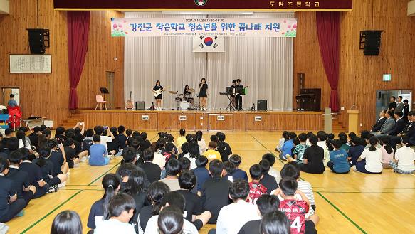 [남도저널 양용숙 기자] 강진청소년지도위원회가 주관하고 강진군청, 강진교육지원청, 강진경찰서가 후원한 ‘강진군 작은학교 청소년을 위한 꿈나래 지원’ 행사가 지난 16일 도암면 도암초등학교 대강당에서 열렸다.