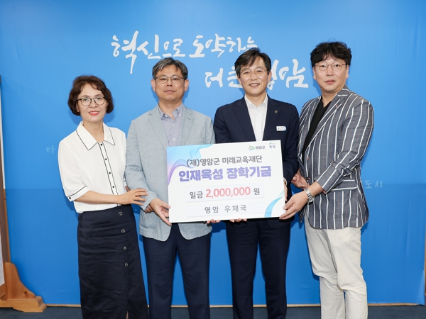 [남도저널 김승귀 기자] 영암우체국이 12일 (재)영암군미래교육재단에 장학기금 200만원을 기탁했다.