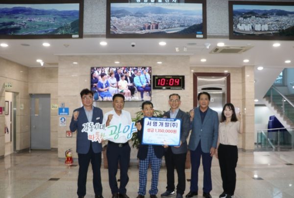 서명개발(주), 광양읍에 후원금 135만원 기탁