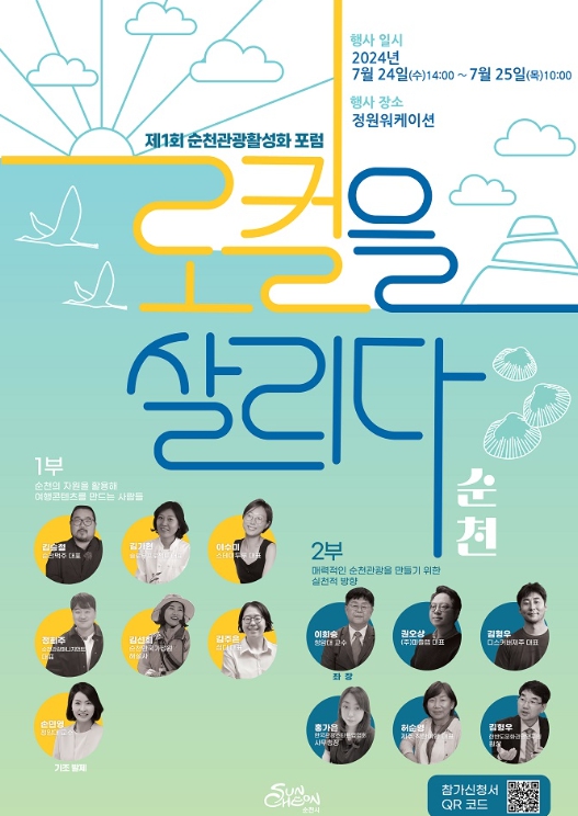 포럼에서는 청암대학교 웰니스문화관광·푸드과 손민영 교수의 순천관광의 현재와 미래를 주제로 한 기조발제를 시작으로, 순천 지역 활동가들의 주제발표와 전국 각지의 로컬 콘텐츠 전문가 패널의 토론이 진행될 예정이다.