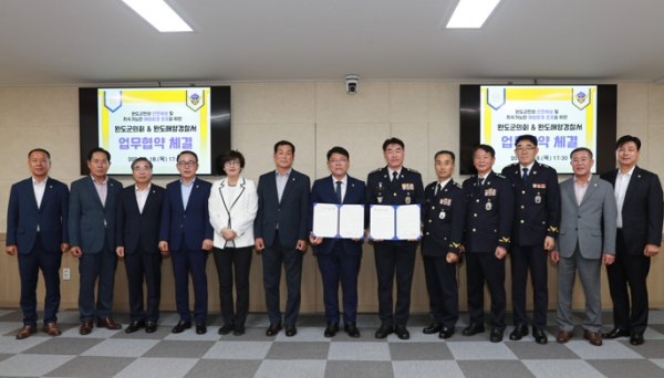 지난 18일 두 기관은 의장, 서장, 군의원, 해경 과장이 참석한 가운데 해양사고 예방 및 군민의 생명과 재산을 보호하기 위한 업무협약을 체결했다.