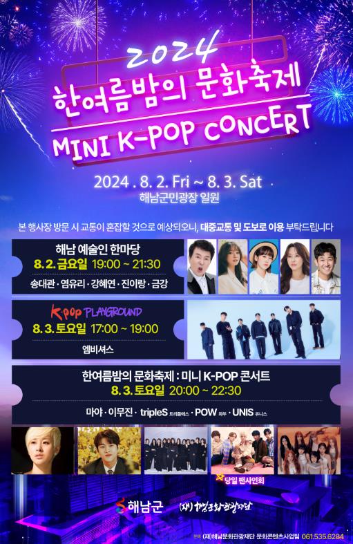[남도저널 김승귀 기자] 해남군은 8월 2일과 3일 이틀 동안 해남군민광장 일원에서‘2024 한여름밤의 문화축제, 미니 K-POP 콘서트’를 개최한다.