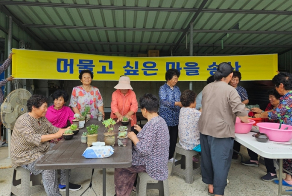 [남도저널 김승귀 기자] 영암군 서호면 송산경로당 어르신들이, 17일 다육 화분 공동제작에 들어갔다.