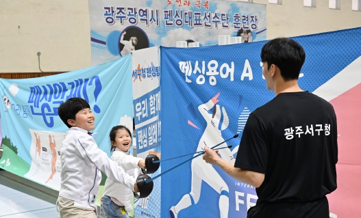 [남도저널 김홍열 기자] 광주 서구는 20일 오전 염주체육관 펜싱훈련장에서 초등학생 자녀를 둔 20여가족이 참석한 가운데 서구 펜싱선수단이 직접 지도하는 펜싱교실을 열었다.