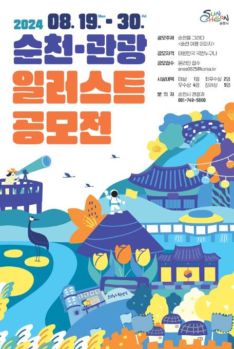 [남도저널 김영도 기자] 순천시는 8월 19일부터 8월 30일까지 14일간 순천의 아름다운 자연과 문화를 일러스트로 담아내는 순천 관광 일러스트 공모전을 개최한다고 밝혔다.