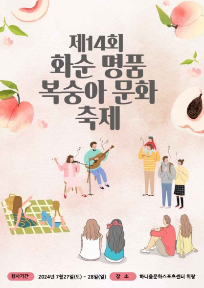 화순 명품 복숭아 축제는 화순군의 대표적인 여름 농산물인 복숭아의 우수한 맛과 품질을 널리 알리기 위해 매년 개최하는 행사이다. 작년에는 수확기에 계속된 집중호우 피해로 인해 행사가 개최되지 못했다.