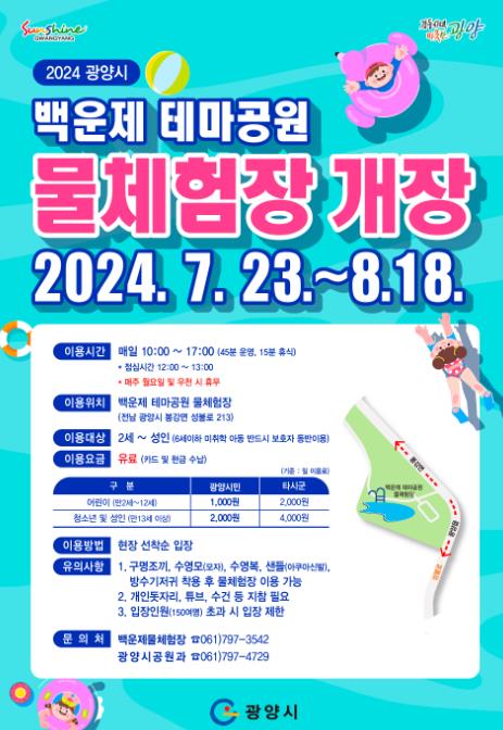 [남도저널 김영도 기자] 광양시가 오늘(23일) 백운제 테마공원 물 체험장(봉강면 성불로 213 일원)을 개장했다.