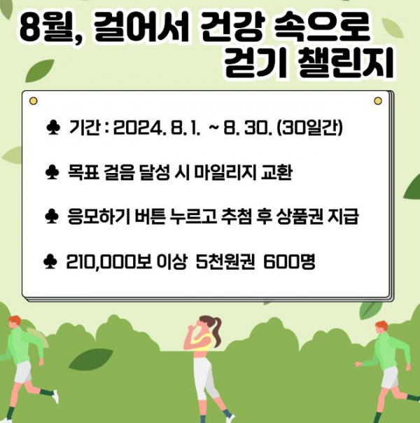 ‘8월, 걸어서 건강 속으로 걷기 챌린지’, 목표 걸음 달성자 600명에 혜택 제공