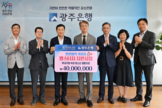 광주광역시 서구는 23일 광주은행으로부터 여성 청소년들을 위한 맘스터치 사업비 4000만원을 기탁받았다. 서구는 이 후원금을 이혼, 사별 등 가정환경으로 엄마가 부재중인 여성 청소년을 위해 사용할 예정이다. 서구지역사회보장협의체 아동‧청소년 분과 여성위원들이 착한맘(MOM) 멘토로 나서 여성 청소년들의 속옷과 화장품 구입 등을 돕고, 가족 외식, 영화관람, 문화체험 등 심리적 안정도 지원할 계획이다.