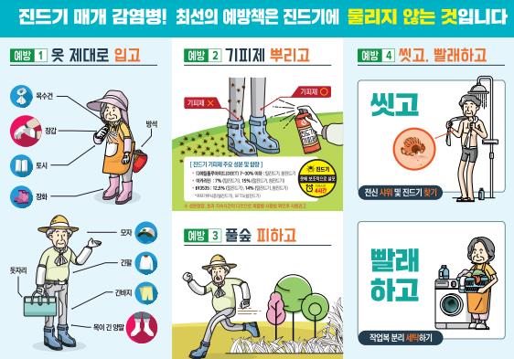 보건소 관계자는 “ 다가오는 휴가철 야외활동 증가로 인해 진드기 매개 감염병에 노출될 가능성이 높아지고 있다.”라며 “농작업이나 야외활동 시 진드기 예방수칙을 준수하고, 야외활동 후 2주 이내로 증상 발생 시, 의료기관을 방문해 의료진에게 야외활동 이력을 알리고 진료를 받아야 한다.”라고 말했다.