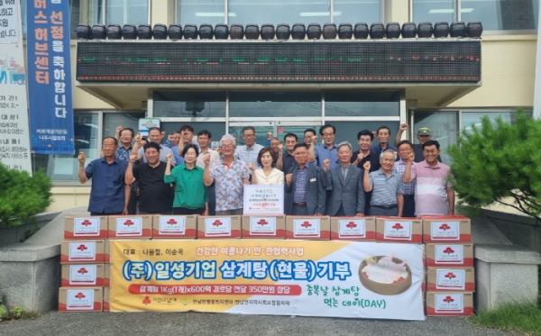 [남도저널 김용범 기자] 나주시 반남면은 ㈜일성기업이 중복을 맞아 어르신들의 건강을 기원하는 삼계닭 600마리를 기탁했다고 24일 밝혔다.