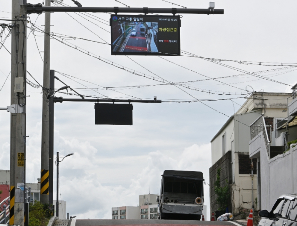 서구는 올해 예산 7000만원을 확보해 반대 방향 오르막길 상황을 실시간 영상으로 촬영하고 LED 전광판으로 안내하는 스마트 반사경을 설치했다. 이번 사업을 통해 운전자 시야확보가 어려웠던 교통 사각지대를 해소함으로써 보행자 및 운전자 안전에도 파란불이 켜졌다.
