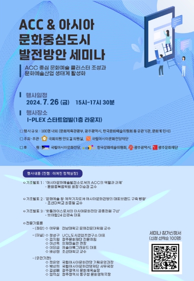 광주 동구남구을 안도걸 국회의원은 오는 26일 'ACC & 아시아 문화중심도시 발전방안 세미나'를 개최해 문화중심도시 광주의 미래를 이끌 ACC의 대전환을 논의한다고 밝혔다.